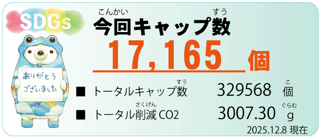 エコキャップのご報告(12/13)🎄英昭 川人2025年12月12日読了時間: 1分12/8 段ボール5箱、社会福祉法人ひかり福祉会・セルプひこねへ送りました。皆様のご協力をありがとうございました。🤗(正面玄関・キョーエイ側入口・ユニクロ側入口・中央地下入口に 回収ボックスを設置いたしております。)Instagram【apica】💚:#ショッピングプラザアピカ